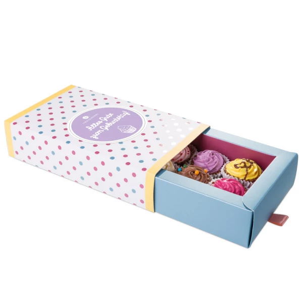 Die eingelegten Pralinen sind eine Zufallsauswahl aus unserer Cupcake-Pralinen-Kollektion. Daher kann es zu Abweichungen zu den Produktbildern und zu Dopplungen der eingelegten Pralinen kommen.