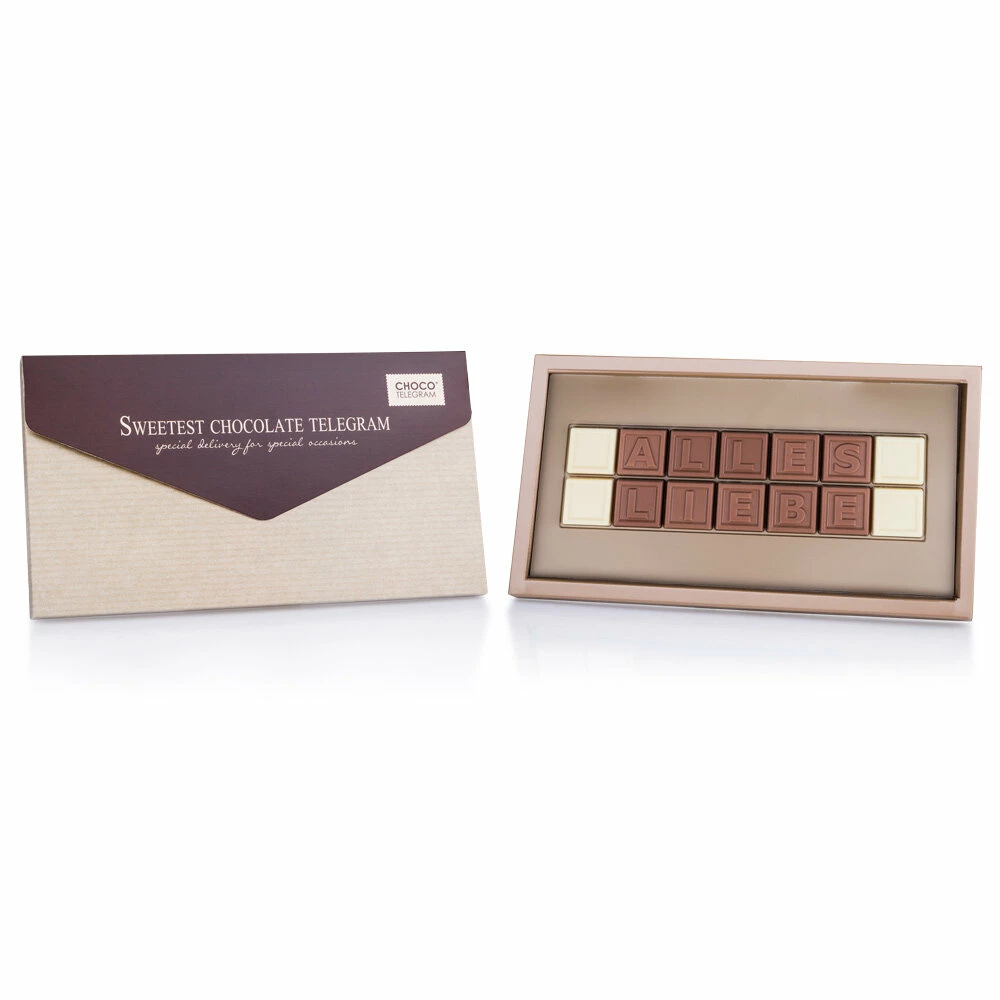 Was freut mehr als eine Grußkarte und Schokolade? Richtig! Die Kombination aus Beidem! Diese liebe Botschaft besteht nämlich aus feinster Vollmilch- und weißer Schokolade. Versenden Sie eine zuckersüße Schokoladenbotschaft, als Gruß direkt zu Ihren Liebsten.