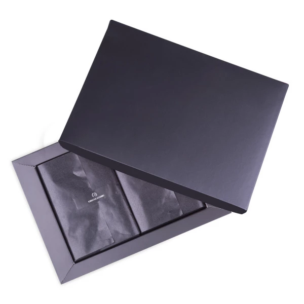 Zwanzig handgefertigte Pralinen mit und ohne Alkohol in einer eleganten und schlichten schwarzen Schachtel. Dekoriert ist die Verpackung mit einer schwarzen chocolissimo-Schleife (siehe Abbildung).