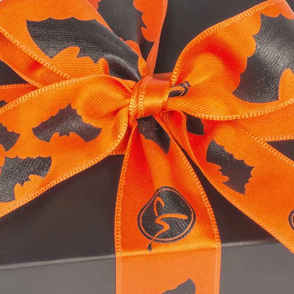 Acht unheimlich deliziöse Pralinen, mit und ohne Alkohol, erwarten den Naschenden, falls Ihm Süßes gewährt wird. Versteckt sind die Köstlichkeiten in einer länglich schwarzen Verpackung mit orangefarbenem Geschenkband mit Fledermäusen darauf!