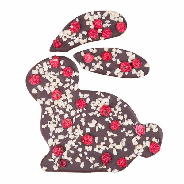 - Handgefertigte Schokoladentafel in Form eines Osterhasen aus Zartbitterschokolade