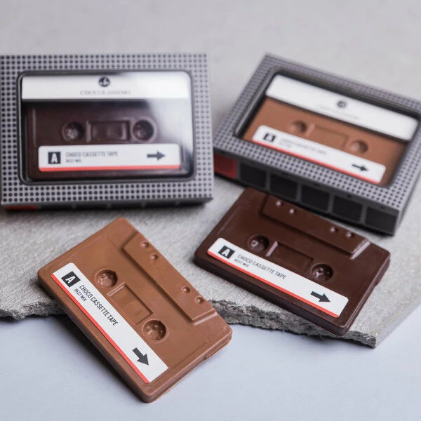 Wer ausgefallene Schokolade sucht, liegt mit der ‚ChocoKassette – Zartbitter‘ genau richtig. Feinste Zartbitterschokolade, die auf der Zunge förmlich zergeht und das in Form einer Musikkassette!