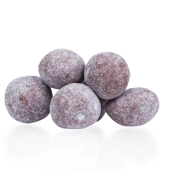 - Karamellisierte Haselnüsse in einem Mantel aus Vollmilchschokolade mit Puderzucker