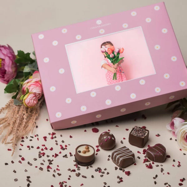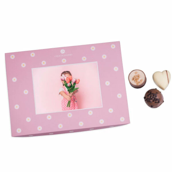 Bei der ‚ChocoPostcard Midi – Rosa‚ handelt es sich um das perfekte Geschenk zu jedem Anlass. Beim Öffnen des Deckels erwarten Sie 15 handgefertigte Pralinen, verfeinert mit ausgezeichneten Crèmes, die geradezu darauf warten, genossen zu werden. Schon in der Standardvariante macht die Verpackung einen grandiosen Eindruck – die Möglichkeit sie mit einem persönlichen Foto zu versehen, macht sie vollends zu etwas Besonderem.
