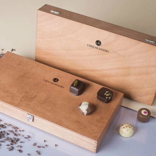Jede Menge Pralinen in einer Holzkiste: Ein hinreißendes Holzschatzkästchen mit leckeren 30 handgefertigten Pralinen! Garantiert ein tolles Geschenk zum Jubiläum, Geburtstag und anderen festlichen Anlässen! Doch das ist noch nicht alles: Das Holzschatzkästchen kann per Lasergravur mit einem von Ihnen gewählten Text versehen werden, sodass es eine persönliche Note erhält. Die Gravur wird mittig auf dem Deckel des Kästchens angebracht.