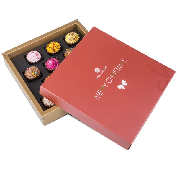 Sie möchten jemandem sehr ausgefallene Pralinen unter den Weihnachtsbaum legen? Dann sind die 12 CupCakes genau die richtige Wahl, um das Weihnachtsfest zu versüßen. Verpackt in einer sehr eleganten rot-goldenen Schachtel wird das Verschenken zu einem Vergnügen.