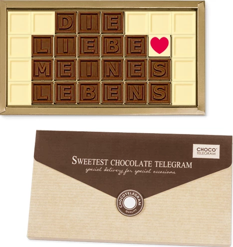 Diese Nachricht bereitet deinem Schatz mit Sicherheit eine große Freude. Insbesondere, wenn so eine tolle Nachricht aus edler belgischer Schokolade besteht. Im schlichen Umschlag ist die Überraschung unscheinbar und deshalb umso besonderer.