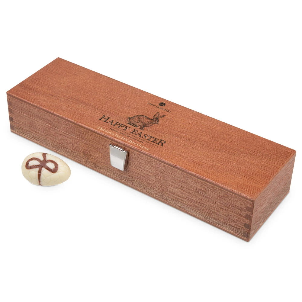 - Holzkästchen mit 5 handgefertigten Osterei-Pralinen