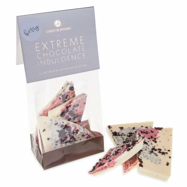 Diese himmlische weiße Bruchschokolade ist mit Himbeeren sowie Blaubeeren kombiniert und mit getrockneten Beeren dekoriert. Lassen Sie es sich schmecken!