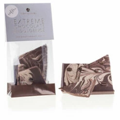Feinste Zartbitterschokolade, die mit einer Füllung aus weißer Schokolade und gemahlenem Kaffee verarbeitet ist, lädt zum Genießen ein. Verziert sind die Schokoladenstücke mit Kaffeebohnen. Optisch und geschmacklich ein Highlight.