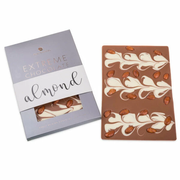Eine hübsche Mischung von weißer und Vollmilchschokolade, garniert mit Mandeln. Nicht nur optisch ein Hingucker, sondern auch für Genießer ein wohlschmeckendes Erlebnis!