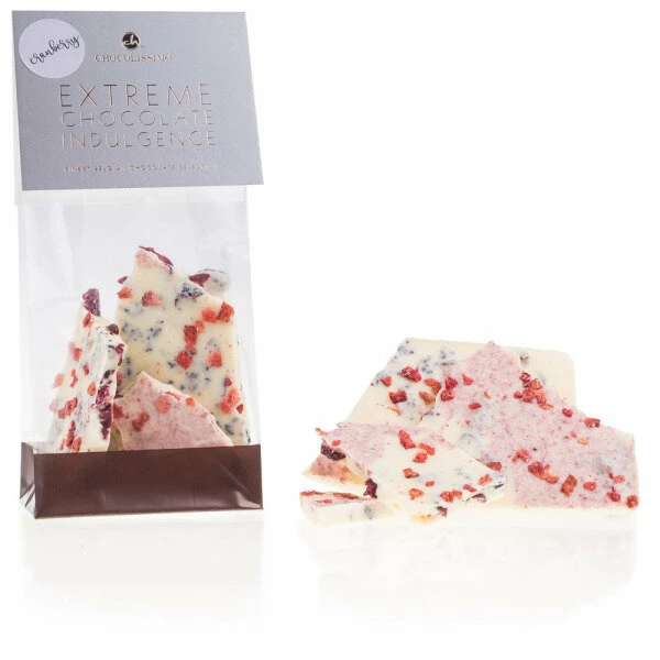 Schokolade der feinsten Art: Genießen sie diese weiße Bruchschokolade, die mit Cranberries, Erdbeerstückche und einer Mischung aus Waldfrüchten und Erdbeeren kombiniert wurde. Wer es fruchtig mag, kommt hier voll auf seine Kosten.