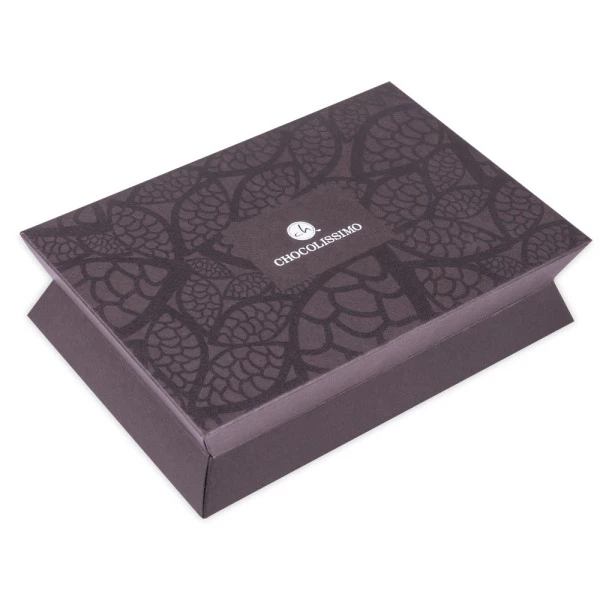Ein einzigartiges Set, ausgewählt aus den besten Chocolissimo-Produkten. Zubereitet für die größten Schokoladenliebhaber, die die vorzüglichen Aromen mögen. Eine Minibar aus dunkelweißer Schokolade, kombiniert mit Pralinen mit einzigartigen Füllungen und Rosinen in weißer Schokolade befriedigen die Vorlieben anspruchvollsten Feinschmecker. Alles wurde in einer eleganten Verpackung mit Kakaobohnen-Motiven verpackt.