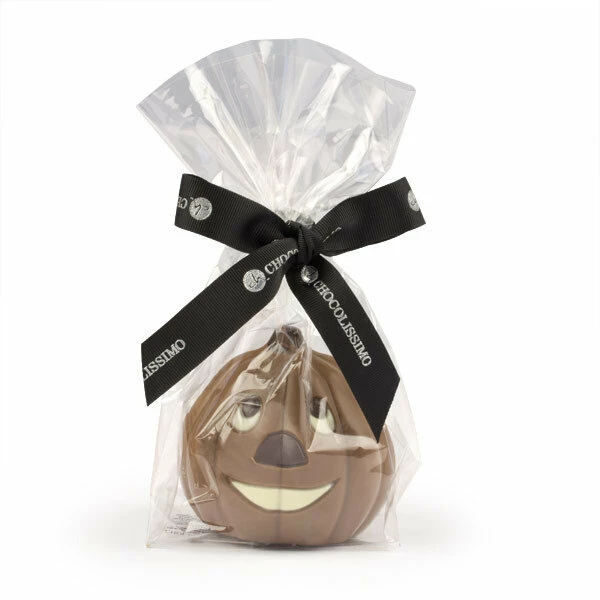 Halloween ist die Zeit der dekorativen Kürbisse. Passend dazu hat CHOCOLISSIMO ein perfektes Schmankerl im Angebot: Einen Halloween-Kürbis aus zartester Vollmilchschokolade. Stiel, Augen, Mund und Nase wurden aus weißer und Zartbitterschokolade gefertigt, um dem süßen Kürbis weitere geschmackliche Akzente zu verleihen! Der unheimlich süße Geselle ist in Folie eingepackt.