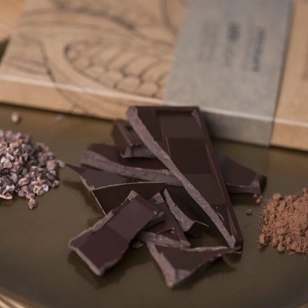 Die Schokolade hat einen intensiven Geschmack und schmeckt nach geröstetem Kakao und Bitterkeit.