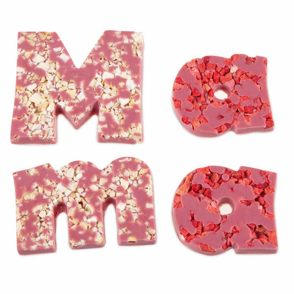 Unsere vier leckeren Schokoladenbuchstaben, aus rosafarbener Schokolade, die das Wort MAMA ergeben sind ein perfektes Geschenk für die Mutter zum Beispiel zum Muttertag. Die Buchstaben bestehen aber nicht nur aus der lecker Ruby Schokolade, die fruchtig im Geschmack ist, sondern es kommen noch zusätzliche Zutaten in Form von getrockneten Erdbeeren und Aprikosen hinzu. Die schön gestaltete Holzbox kann auch noch mit einer persönlicher Widmung auf dem Deckel in Form einer Gravur verziert werden.