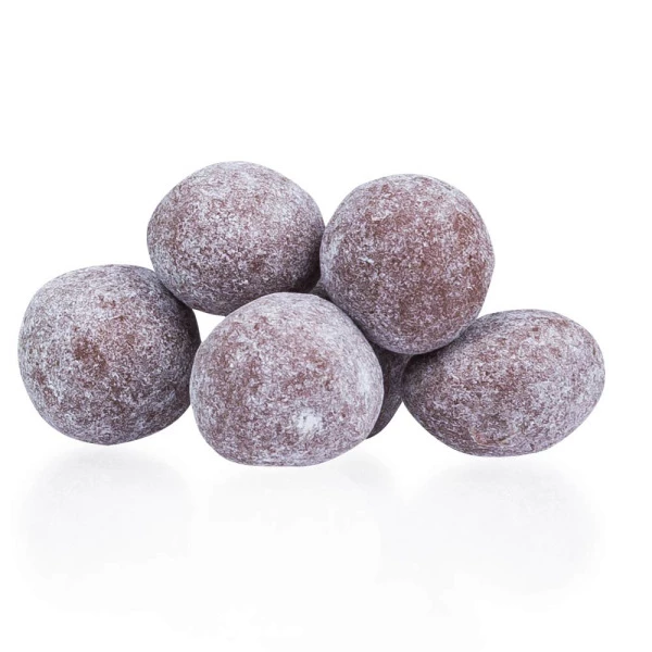 - Karamellisierte Haselnüsse, mit Milchschokolade überzogen und leicht mit Puderzucker bestäubt