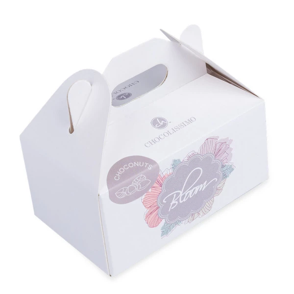 In dem frühlingshaft dekorierten Schächtelchen verbergen sich karamellisierte Haselnüsse, überzogen mit Milchschokolade und leicht mit Puderzucker bestäubt. Eine leckere Knabberei für zwischendurch!