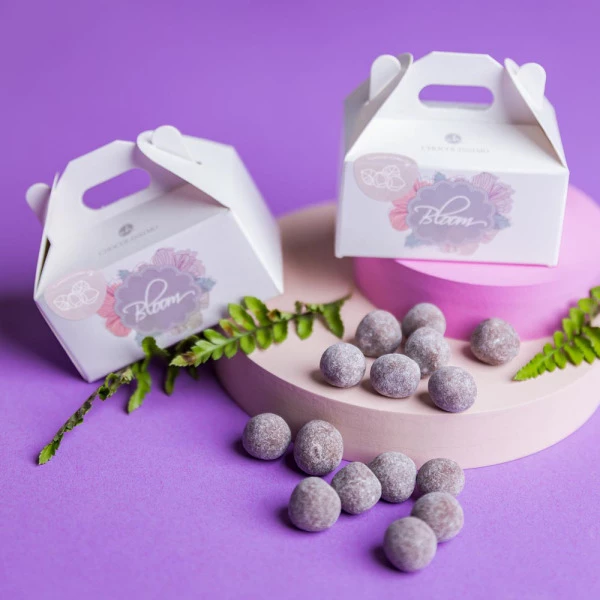 Süßer Genuss: Verpackt in einem hellen Täschchen mit Blumenmotiv!