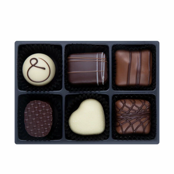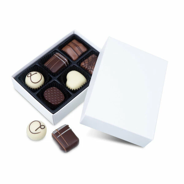 Kleine Aufmerksamkeiten erhalten die Freundschaft, wie man so schön sagt. Die ‚White L‘ ist dafür ideal. Die schlichte aber edle weiße Schachtel macht bereits eine Menge her – doch die Krönung ist selbstverständlich der Inhalt. Die sechs edlen und handgefertigten Pralinen mit unterschiedlichen exquisiten Füllungen schmeicheln Gaumen und Auge!