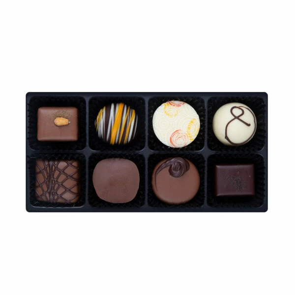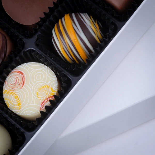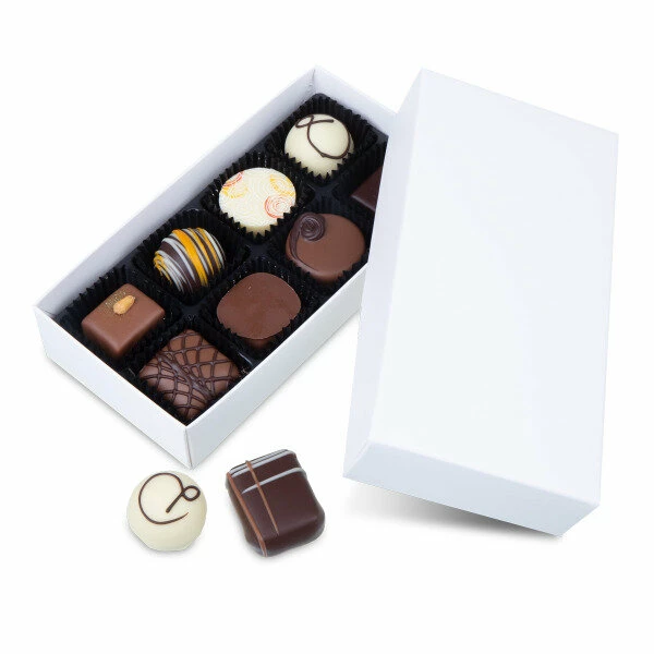 Kleine Aufmerksamkeiten erhalten die Freundschaft, wie man so schön sagt. Die ‚White XL‘ ist dafür ideal. Die schlichte aber edle weiße Schachtel macht bereits eine Menge her – doch die Krönung ist selbstverständlich der Inhalt. Die acht edlen und handgefertigten Pralinen mit unterschiedlichen exquisiten Füllungen schmeicheln Gaumen und Auge!